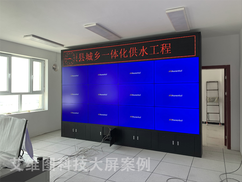 近年來,國家出臺多項政策文件,針對農村供水存在的突出矛盾,提出了農村飲水安全鞏固提升、城鄉(xiāng)一體化供水的工作任務,確定了提高農村自來水普及率和水質達標率,使城鄉(xiāng)居民共享安全、優(yōu)質供水的工作目標。這次艾維圖生產的49寸液晶拼接屏、P3.75LED顯示屏、多功能解碼矩陣一體機產品的應用,充分的說明了城鄉(xiāng)一體化供水工程正在逐步走向集體化、數據化、系統(tǒng)化,通過液晶拼接墻展示出現代化供水項目的發(fā)展,讓人不禁感到驚訝。下面讓我們來看一下艾維圖12臺49寸液晶拼接屏的效果圖吧。