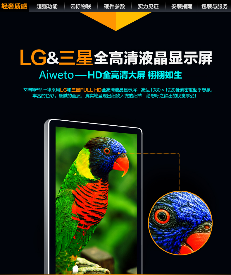 AW-CM320L01 立式觸摸一體機(jī)采用全高清(1920*1080)液晶面板,具有178度視角,高對(duì)比度和亮度,3D數(shù)字降噪,智能消除殘影、重影等失真現(xiàn)象,使得顯示畫面更清晰,穩(wěn)定,色彩更鮮艷。可廣泛運(yùn)用于快餐店、訂票處、學(xué)校、機(jī)場(chǎng)、酒店大堂、交易所、電影院、企業(yè)、會(huì)展展館、商場(chǎng)等場(chǎng)所。