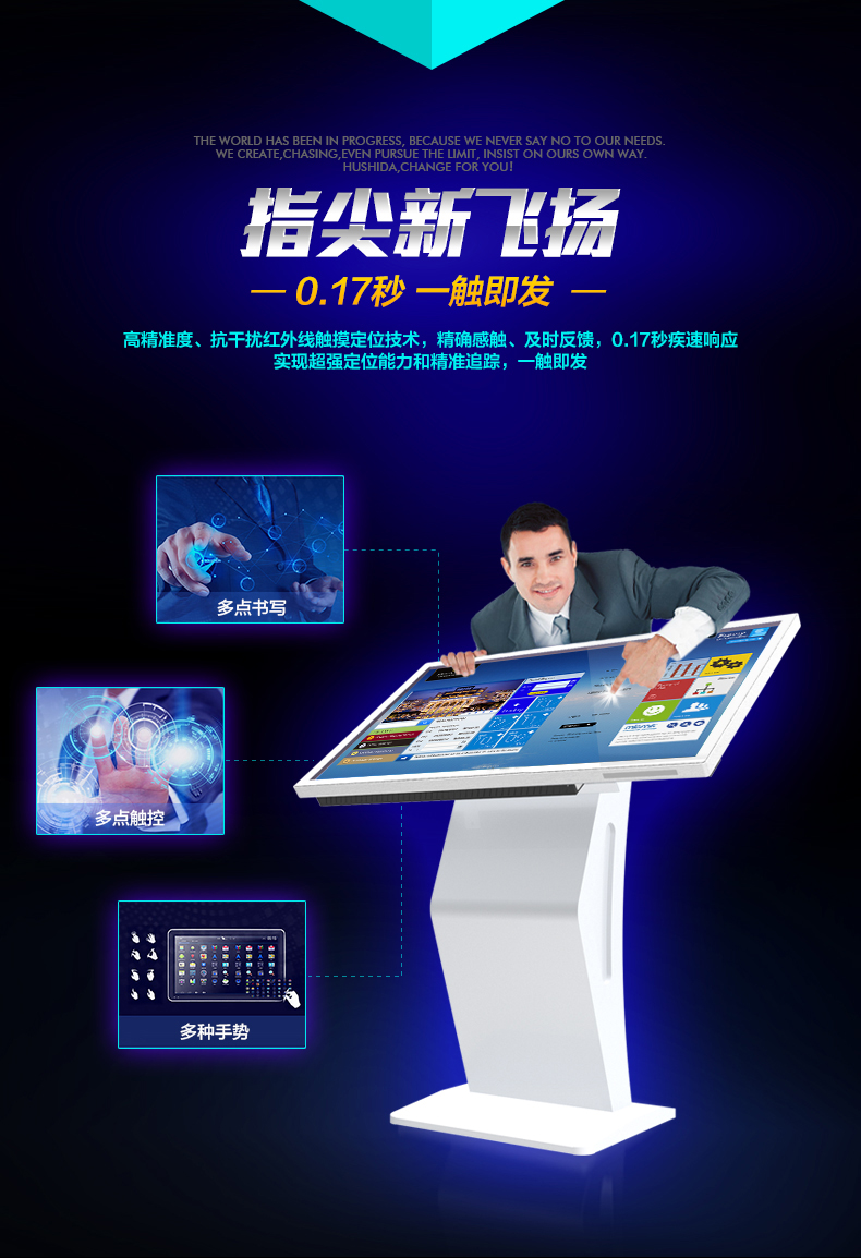 本產(chǎn)品是Aiweto(艾維圖)推出的商用臥式觸摸一體機(jī),采用國際最先進(jìn)的觸控技術(shù),結(jié)合液晶顯示,同時是高度集成計(jì)算機(jī)網(wǎng)絡(luò)技術(shù)等功能,配以性能卓越的觸摸查詢體驗(yàn)效果,快捷完成信息的查詢和展示,真正做到簡單實(shí)現(xiàn)人機(jī)信息交互。